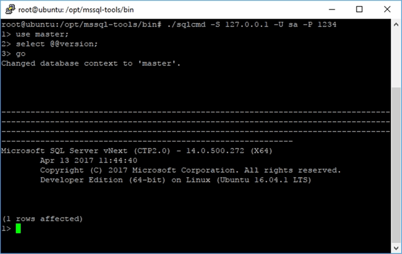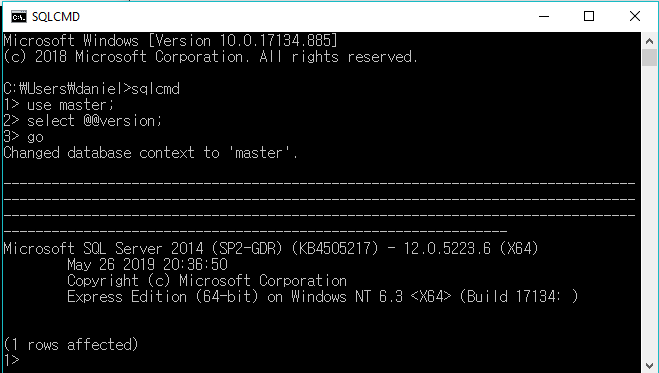 sqlcmd에서 쿼리를 통해 SQL Server의 버전 확인도 가능합니다.